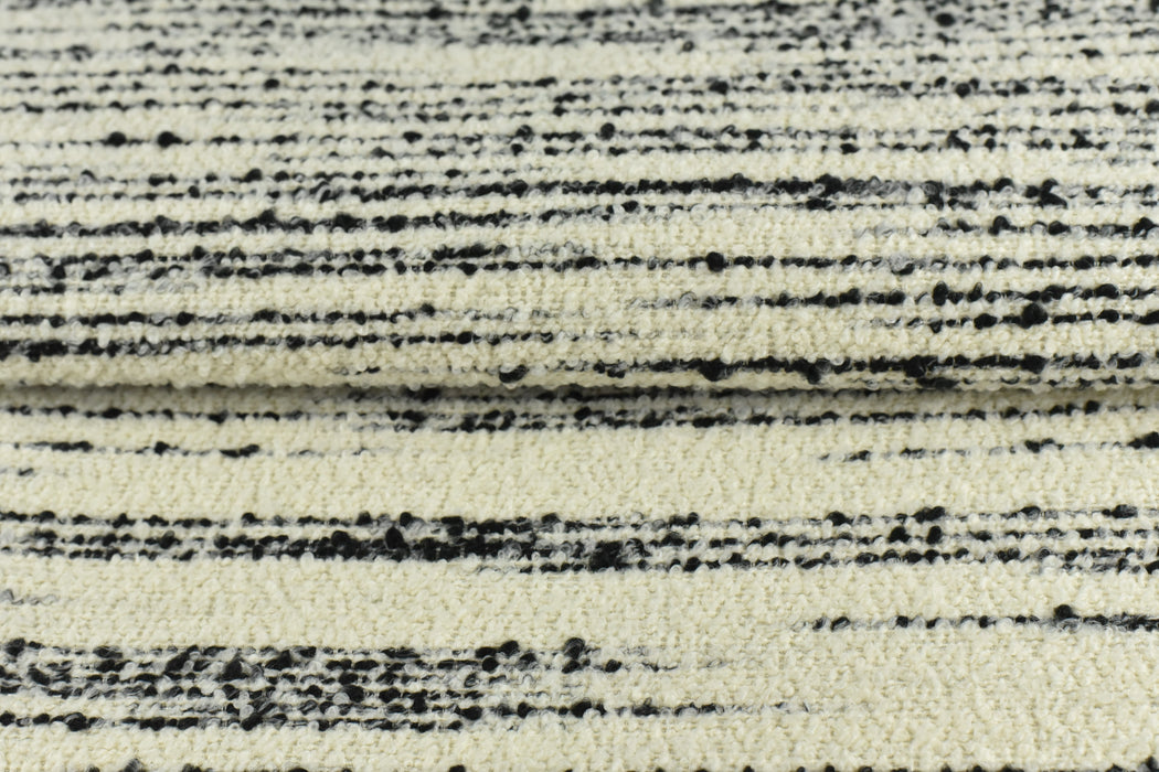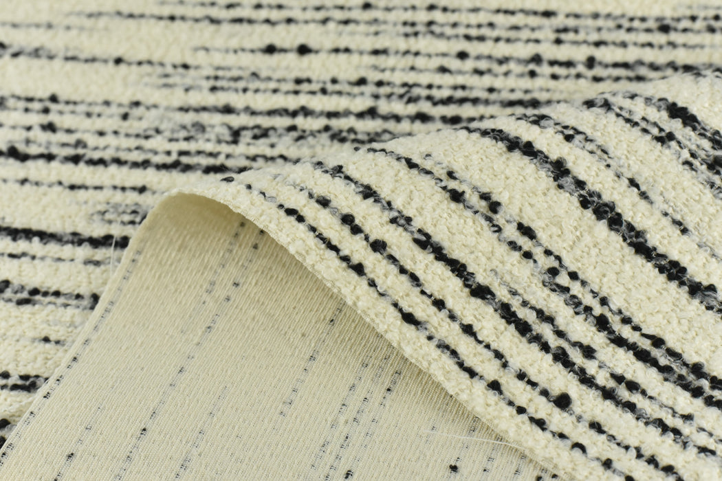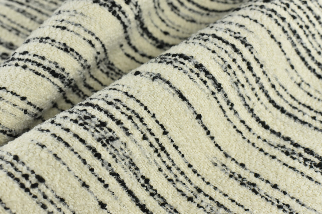 Abstract Geometric Stripe Boucle Upholstery Fabric By The Yard|Black And Cream Home Decor Fabric For Chair Headboard Couch