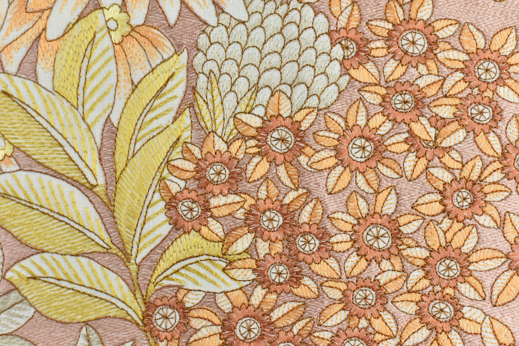 Intricate Embroidery: The pink floral embroidery adds a touch of opulence, creating a timeless botanical garden motif that exudes charm and sophistication.