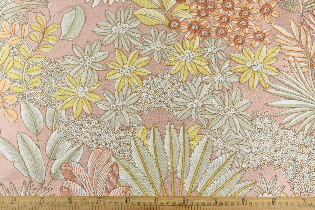 Transform your home into a haven of elegance with our Designer Luxury Cotton Linen Blend Embroidered Floral Fabric. This exquisite fabric features a stunning pink botanical garden design, meticulously embroidered on a premium cotton-linen blend, making it the perfect choice for sophisticated home decor projects.