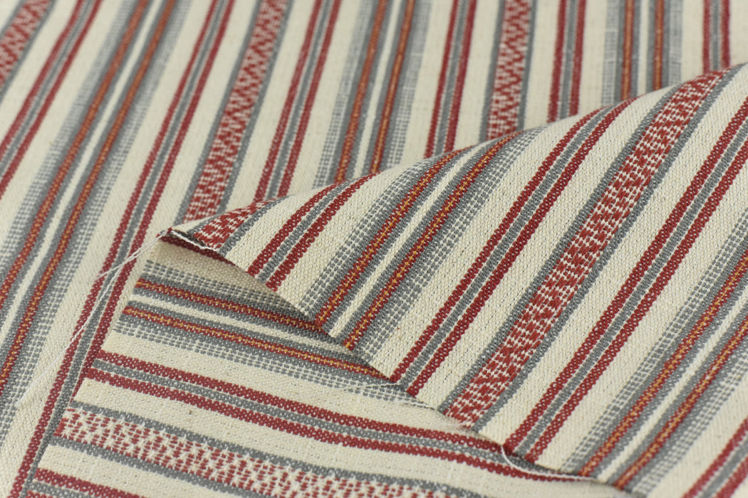 Designer Red White Cotton Blend Foreshore Striped Upholstery Fabric For Chair|Olive Green Farmhouse Ticking Striped Furniture Drapery Fabric
