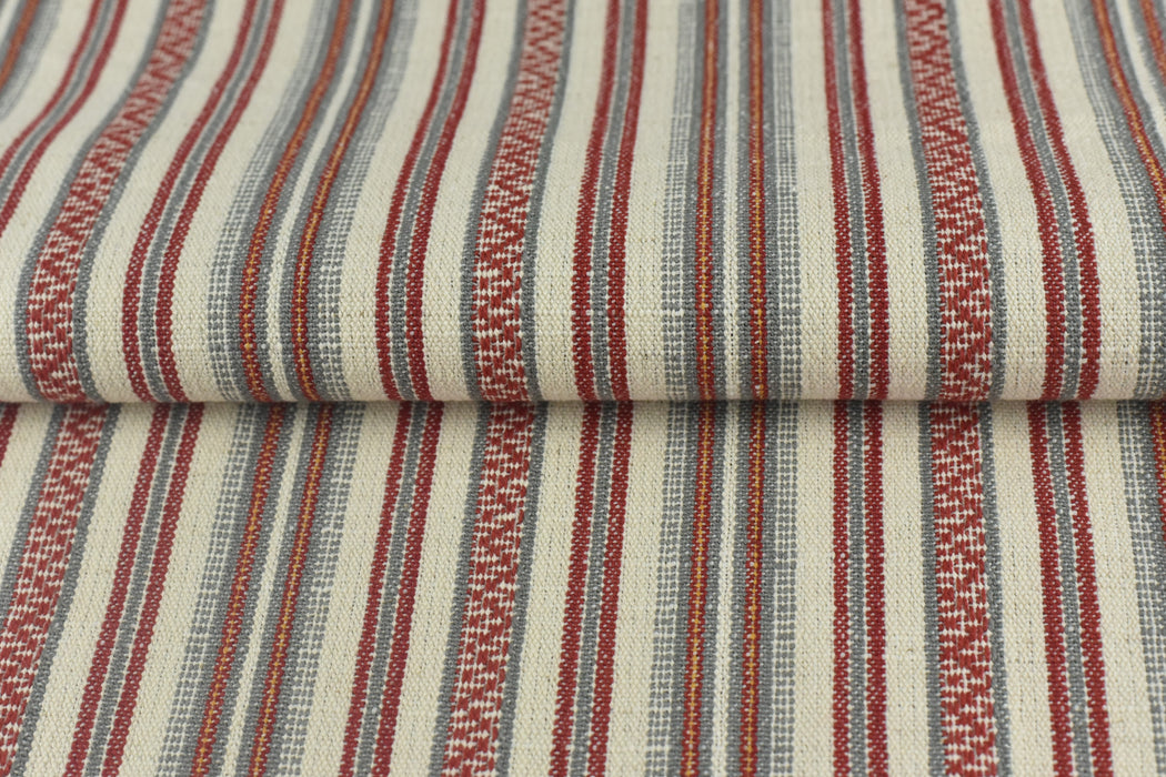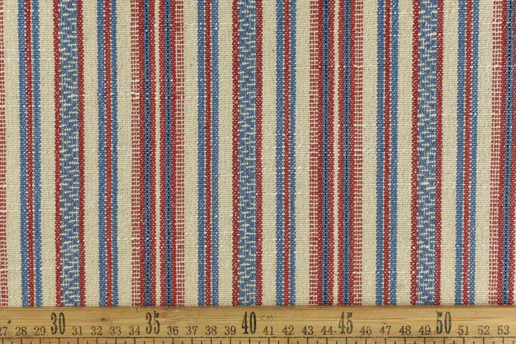 Elevate your space with timeless sophistication using this luxurious heavyweight striped fabric in a bold red blue colorway with subtle white undertones. Perfect for creating French country elegance with a coastal twist, this durable yet refined fabric is ideal for reupholstering furniture, crafting statement curtains, or adding vintage-inspired charm to any room.
