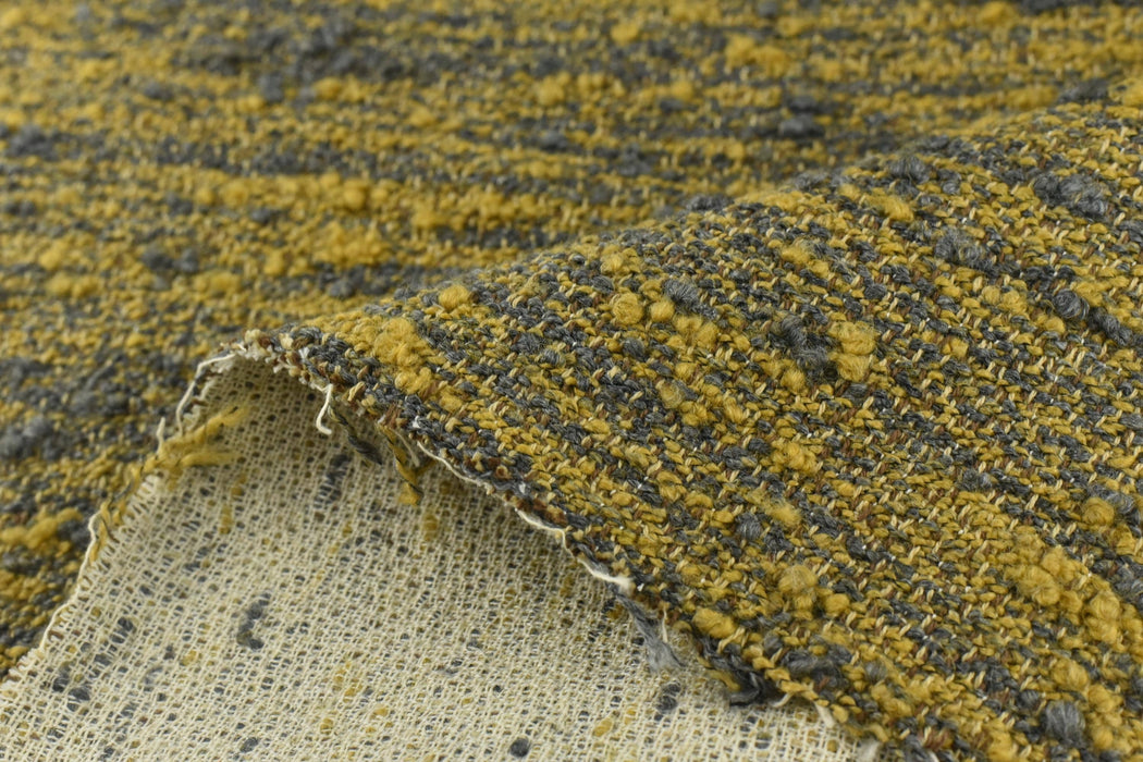 A sample is worth a thousand words! Recommend purchase a sample swatch prior to placing yards/meters.Elevate your space with high-end texture using this luxury cotton-wool bouclé, featuring an irregular chunky weave in sophisticated yellow and grey tones. Perfect for designer furniture pieces, this sumptuous fabric combines upscale appeal with inviting softness.