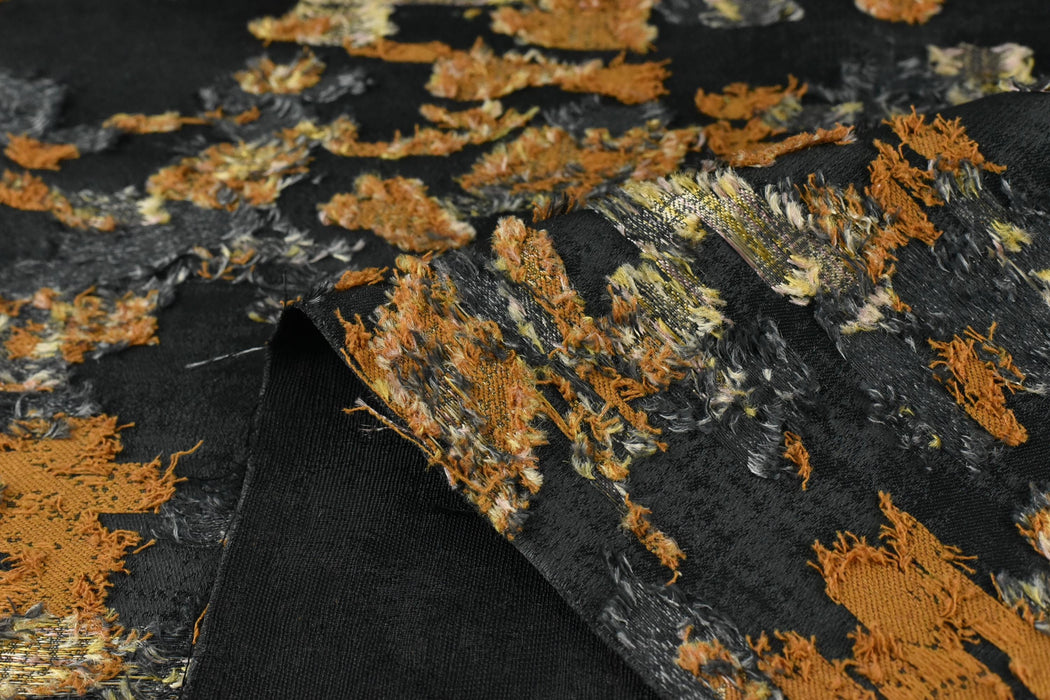 Extra Wide Black Gold Shabby Chic HandCut Floral Fabric For Curtain Drapery|Vintage Abstract Jacquard Home Decor Fabric 114.17"/290CM W