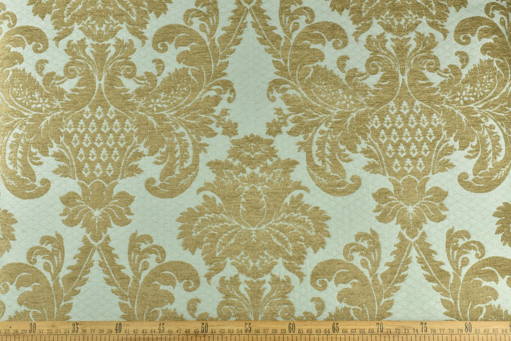 Heavy Weight Blue Tan Vintage Chenille Floral Jacquard Damask Upholstery and Drapery Fabric|MCM Home Decor Fabric For Chair Curtain
