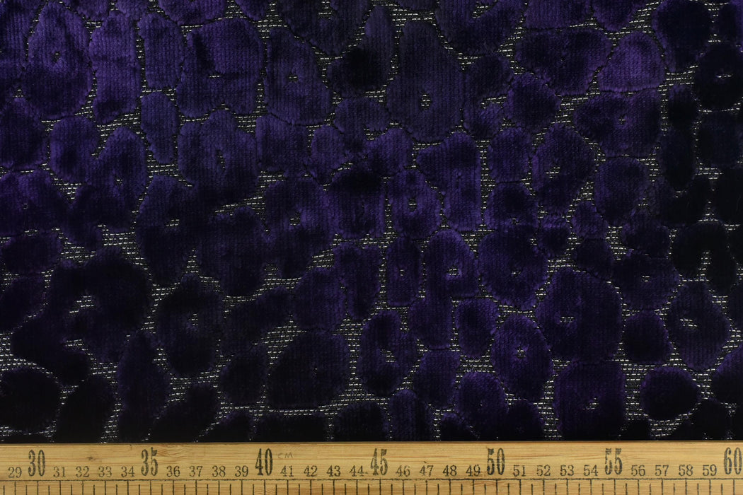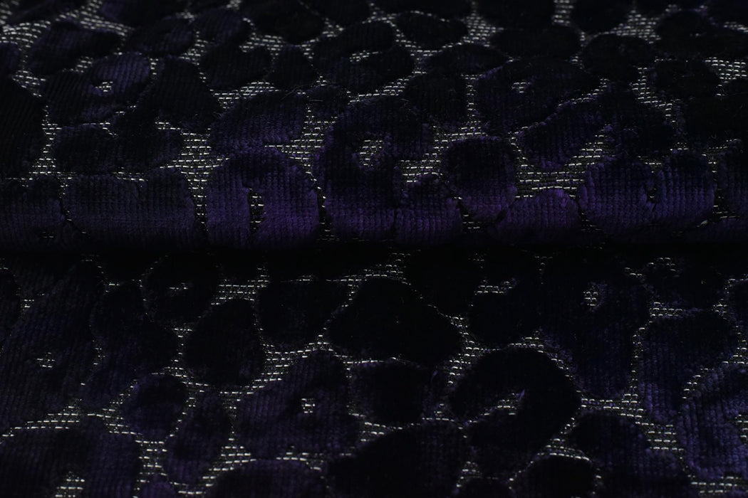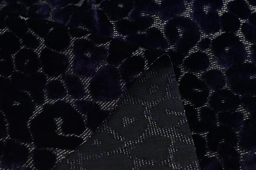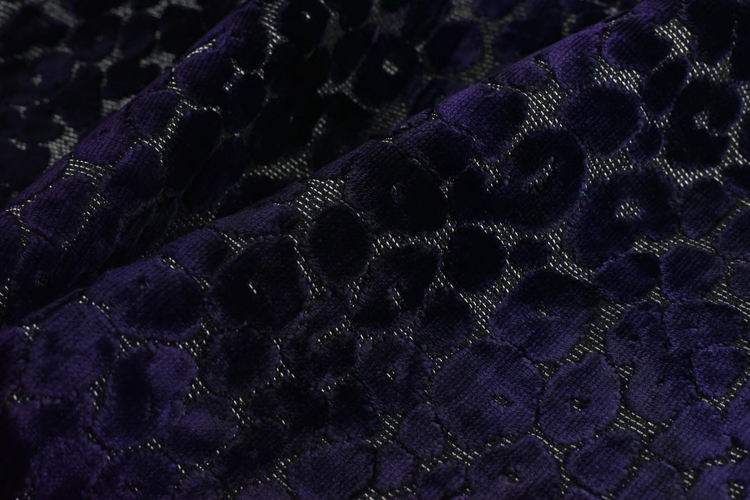 Indulge in opulence with this heavyweight gradient purple leopard raised cut velvet fabric—a stunning blend of vintage charm and modern drama. Featuring an abstract geometric leopard print in mesmerizing purple hues, this plush velvet adds depth, texture, and wild sophistication to any space.