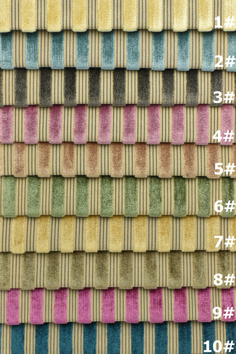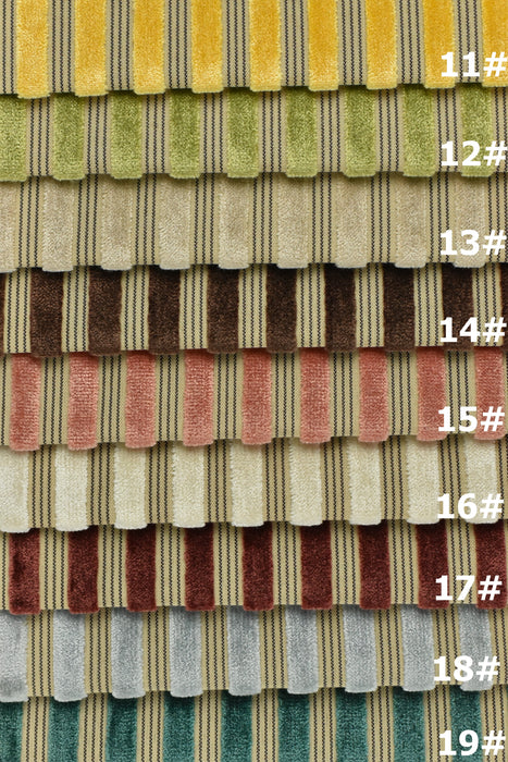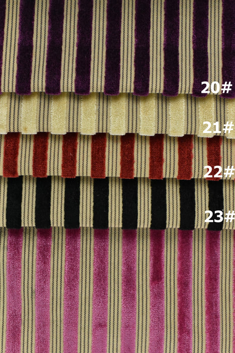 This luxurious velvet upholstery fabric is perfect for adding a touch of elegance and durability to your furniture. Made from durable heavy weight material, it is suitable for a variety of indoor applications such as benches, ottomans, sofas, chaise lounges, and more, Its colored stripe design adds a sophisticated touch to any room. Add a touch of luxury and practicality to your furniture and heavy weight velvet upholstery fabric. Available in a variety of colors to suit any decor, it is the perfect choice for those looking for a durable and elegant solution. Upgrade your furniture and create a truly elegant look with this thick cut velvet fabric.