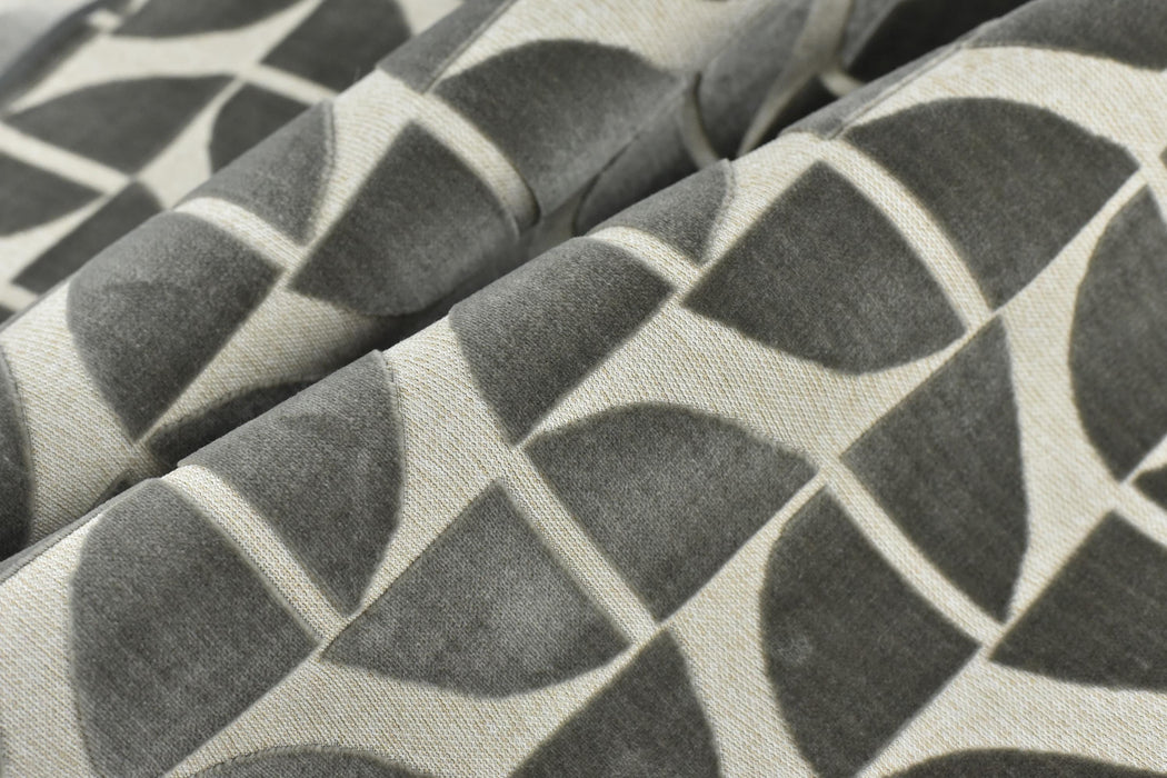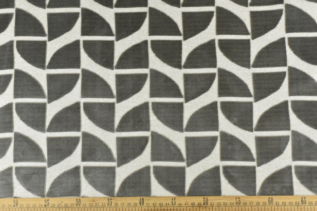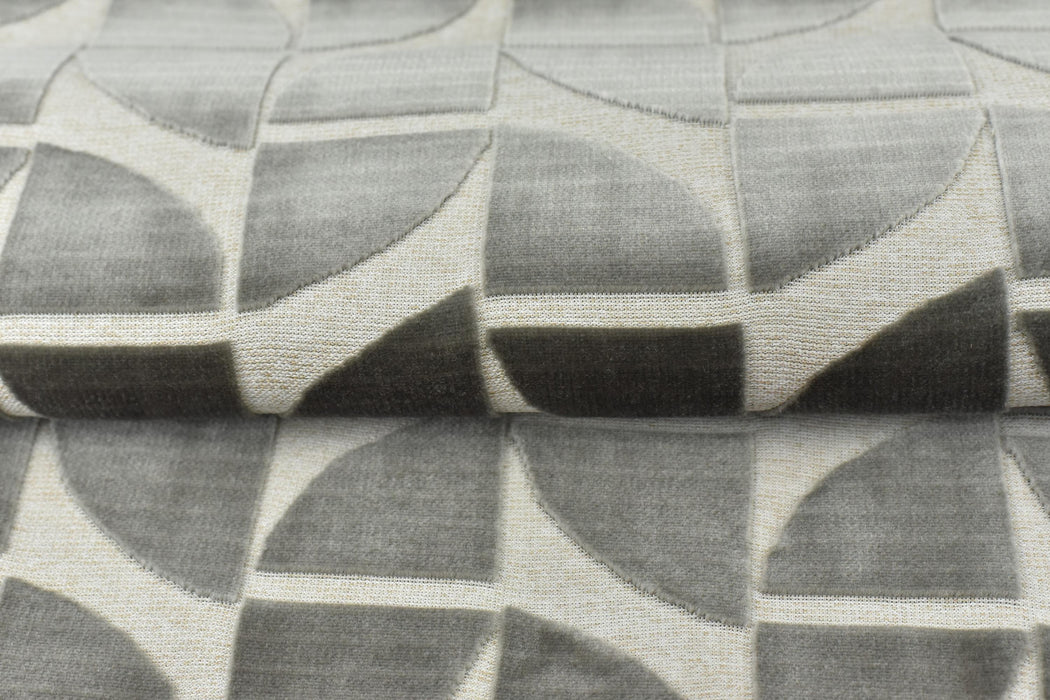 Elevate your furniture with this luxurious Sliver Grey Quarter Circles Geometric Cut Velvet Jacquard Upholstery Fabric. Perfect for chairs, sofas, or accent pieces, this heavy-weight fabric combines timeless elegance with modern geometric design. The rich burnt orange hue is complemented by intricate quarter-circle patterns, creating a bold yet sophisticated statement for any space.