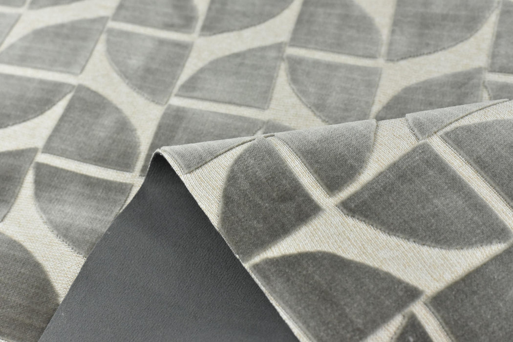 Heavy Weight Light Sliver Grey Quarter Circles Geometric Cut Velvet Jacquard Upholstery Fabric For Chair|Vintage Velvet Fabric For Couch