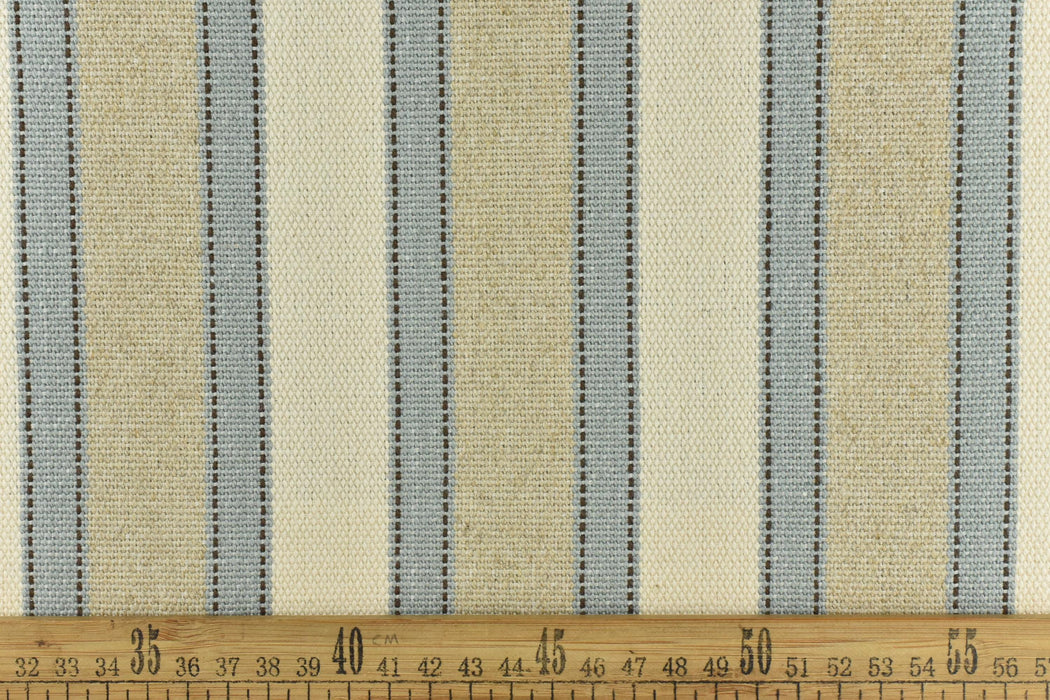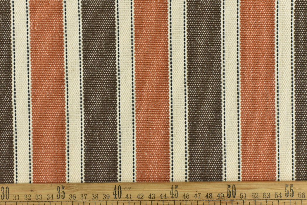 Bring warm, rustic character to your home with this bold primitive boho striped fabric in earthy orange, brown, and vintage blue/yellow tones. Perfect for farmhouse, cottagecore, or eclectic boho interiors, this heavyweight cotton/linen blend combines durability