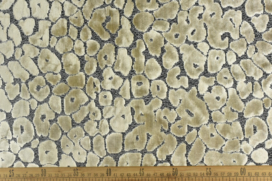 A sample is worth a thousand words! Recommend purchase a sample swatch prior to placing yards/meters.Indulge in timeless glamour with this opulent heavyweight cut velvet, featuring an abstract leopard print in shimmering cream and beige tones. Perfect for adding sophisticated wildness to any interior, this fabric blends vintage charm with modern durability for showstopping furniture pieces.