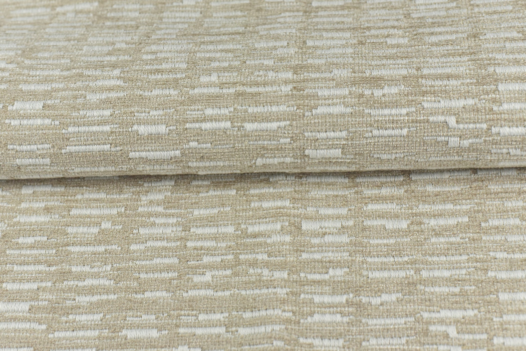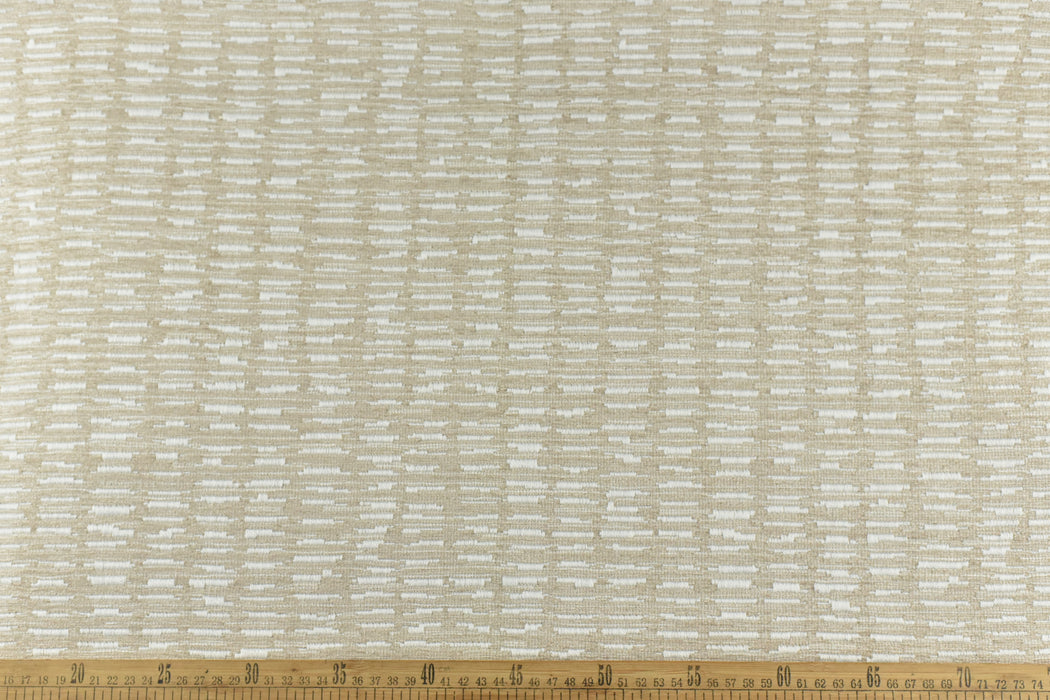 Heavy Weight Tan and White Stylish Linen Blend Abstract Stripe Upholstery Fabric|Modern Geometric Textured Sofa Cushion Fabric 55"W/925GSM