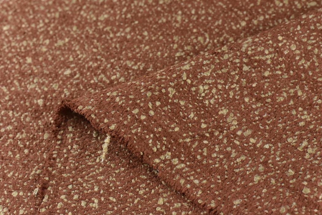 Add a touch of timeless elegance to your home with this Heavyweight Vintage Burnt Orange and Tan Textured Wooly Bouclé Fabric. Featuring a rich burnt orange base with subtle tan accents, this chunky woven fabric exudes sophistication and luxury. Its unique bouclé texture and high-end quality make it perfect for upholstering chairs, couches, or creating statement pillows. Elevate your furniture and decor with this versatile, vintage-inspired fabric!