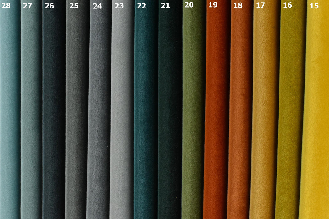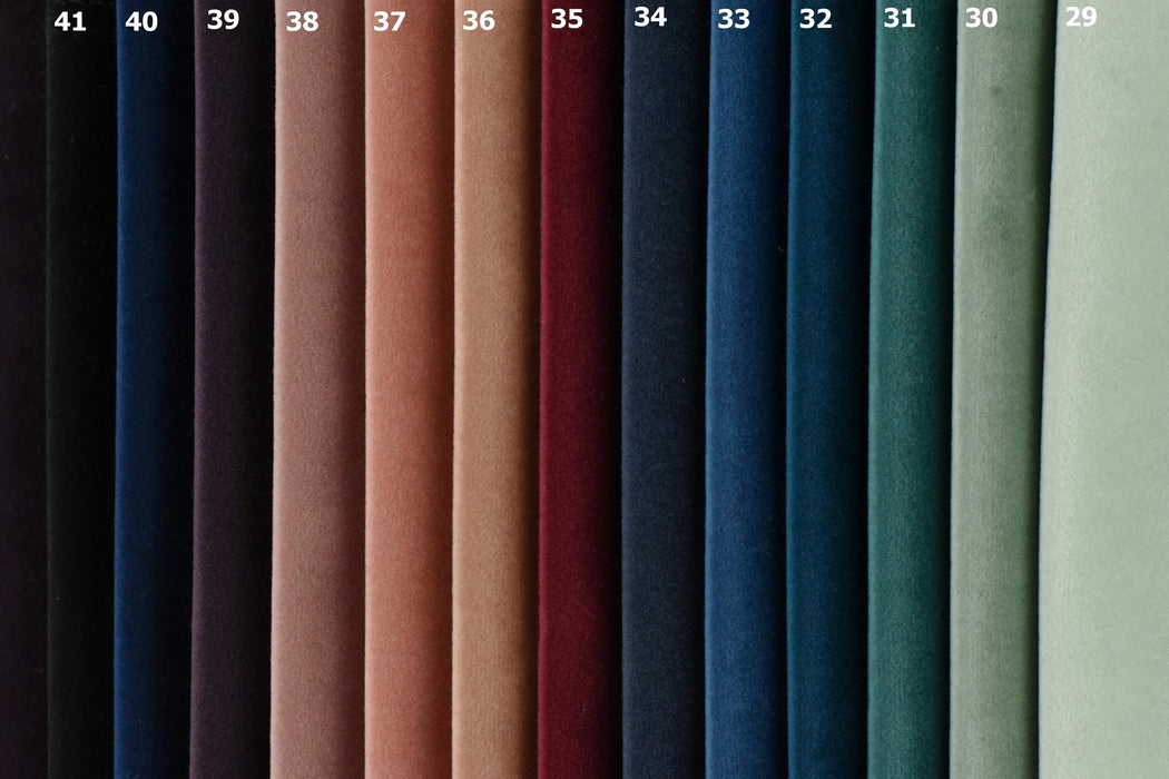 Wrap your furniture in sumptuous texture with our premium heavyweight velvet that combines the cozy feel of wool with plush velvet luxury. Featuring an impressive 41-color palette and innovative felt backing, this extraordinary fabric brings unparalleled quality to your upholstery projects.Elevate your work with this innovative velvet that combines the best qualities of wool and velvet - all with the convenience of built-in stabilization. Whether restoring a vintage chair or creating custom cushions, this fabric delivers professional results with every project. Do not suitable for Curtain Drapery!