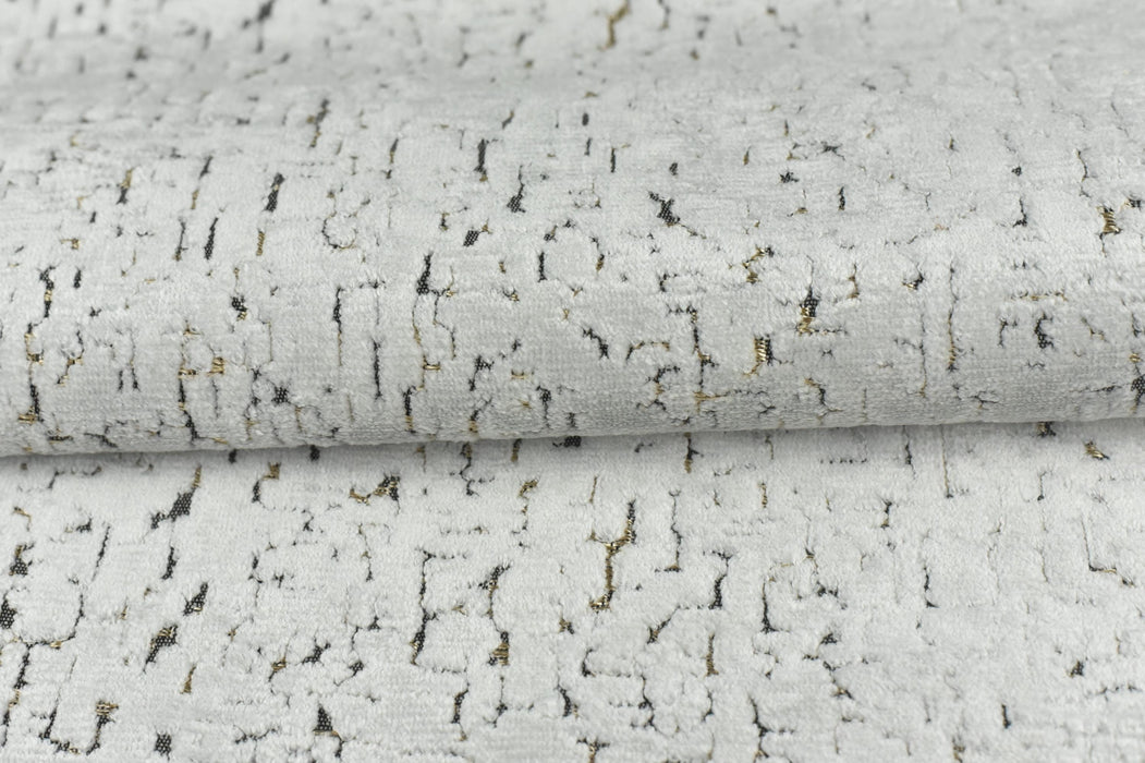 Indulge in dimensional elegance with this ultra-plush 3D velvet featuring a sophisticated abstract geometric pattern in creamy ivory, accented with subtle black and delicate gold metallic threads as background. Perfect for elevating modern and transitional interiors, this heavyweight cut velvet combines artistic depth with irresistible softness.