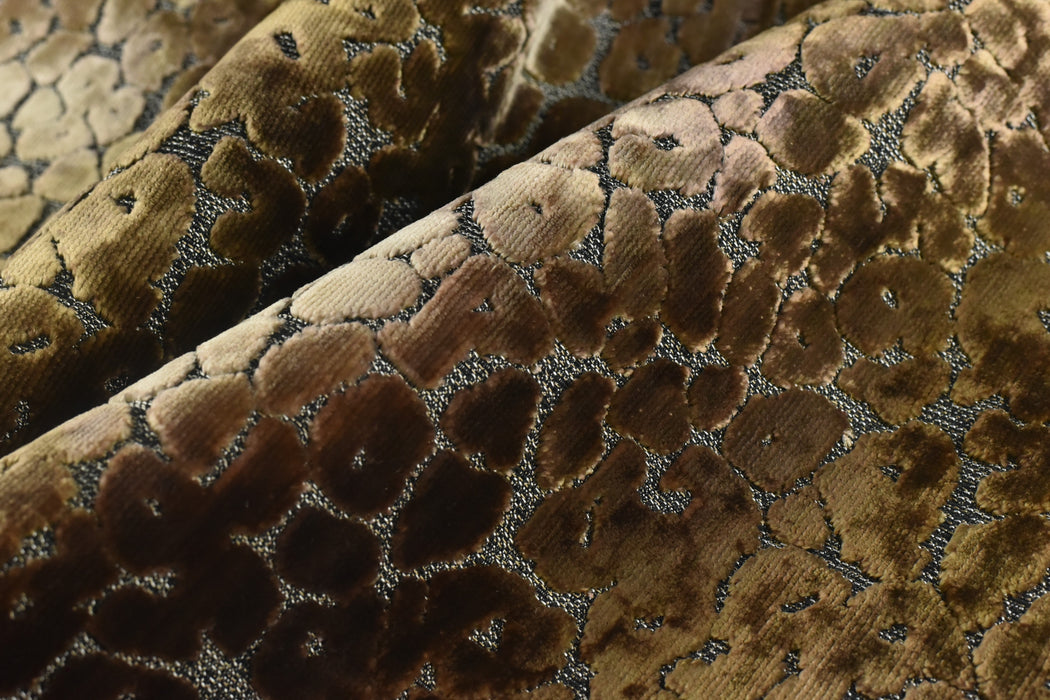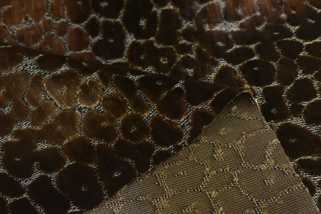 Elevate your furniture with this luxurious, heavyweight hand-painted velvet upholstery fabric. Featuring a stunning gradient brown leopard skin design, this vintage-inspired piece combines the bold allure of animal print with abstract geometric textures. Perfect for chairs, couches, or statement furniture pieces, this raised cut velvet fabric adds a touch of timeless elegance and modern sophistication to any space.