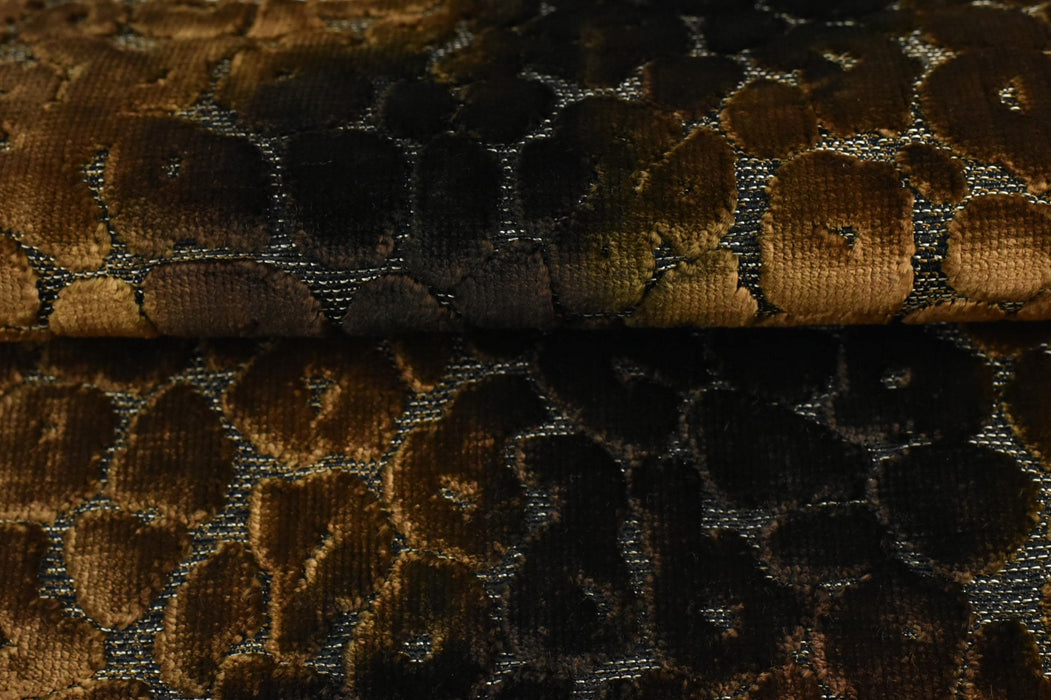 Elevate your furniture with this luxurious, heavyweight hand-painted velvet upholstery fabric. Featuring a stunning gradient brown leopard skin design, this vintage-inspired piece combines the bold allure of animal print with abstract geometric textures. Perfect for chairs, couches, or statement furniture pieces, this raised cut velvet fabric adds a touch of timeless elegance and modern sophistication to any space.