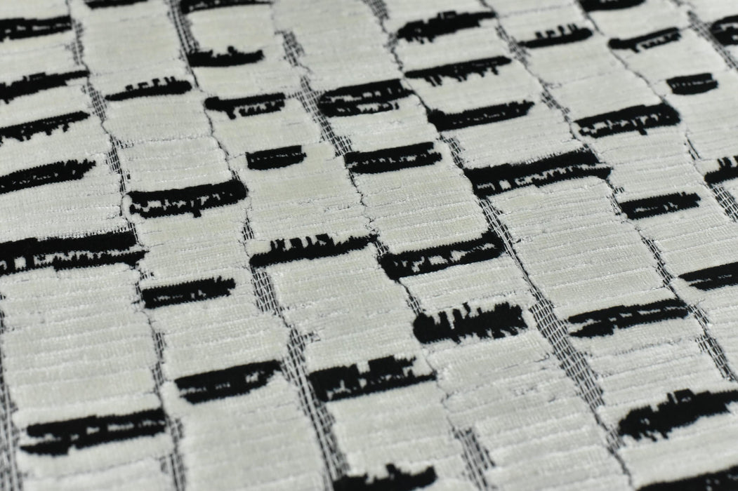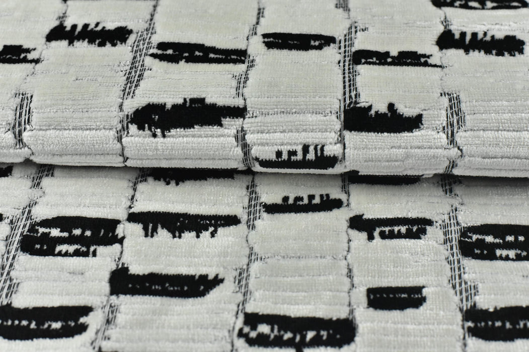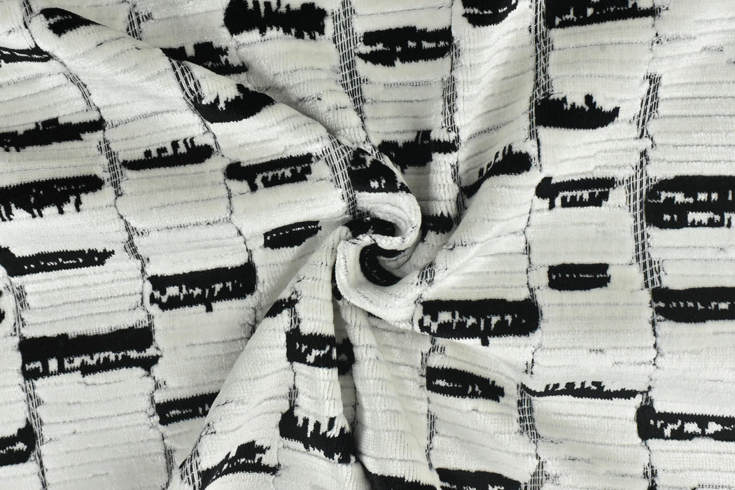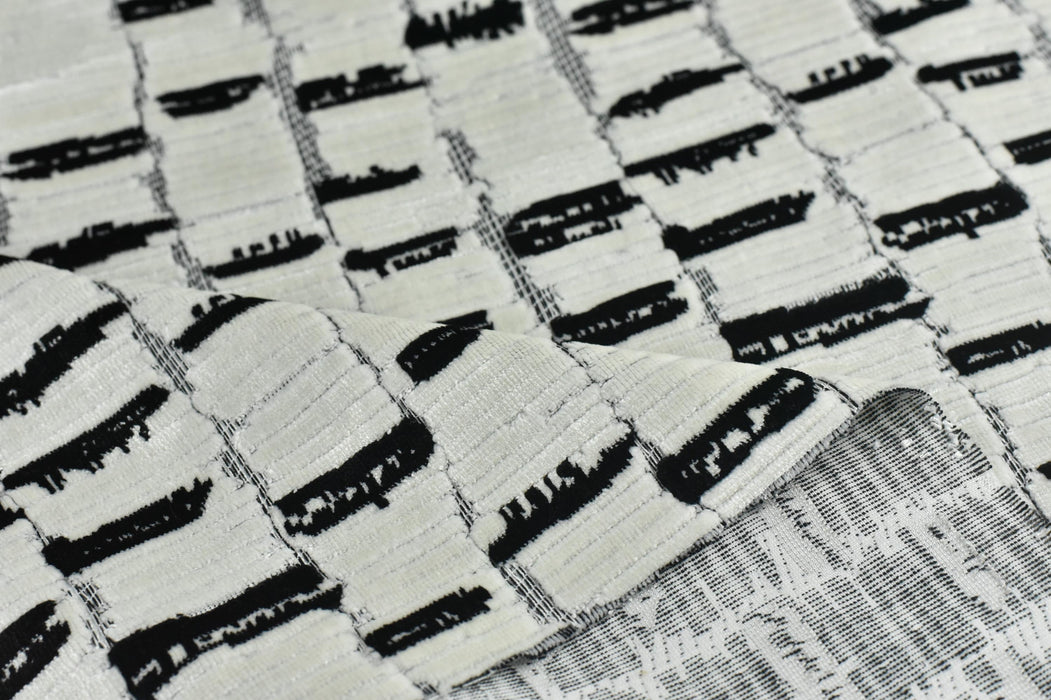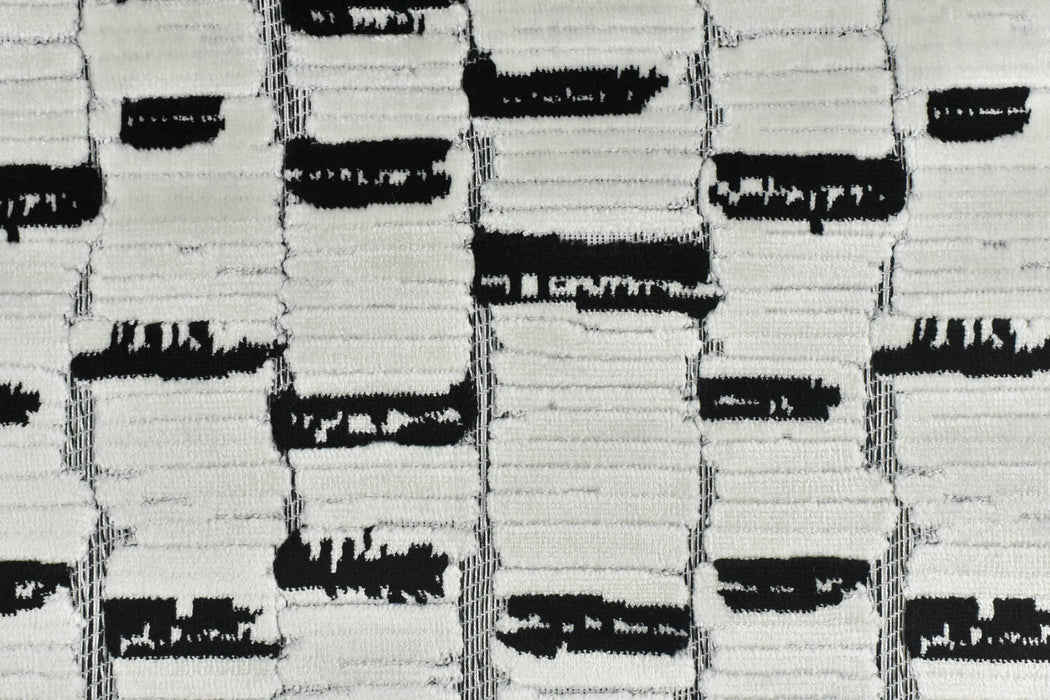 Elevate your modern interiors with this ultra-plush velvet featuring a bold abstract geometric pattern in striking black and white. Designed for those who appreciate contemporary elegance, this heavyweight cut velvet combines artistic flair with sumptuous softness for furniture that makes a dramatic statement.Transform your furniture into functional art with this contemporary velvet that brings museum-worthy style to everyday living. Whether creating a single statement chair or an entire modern sofa set, this fabric delivers unparalleled designer appeal.