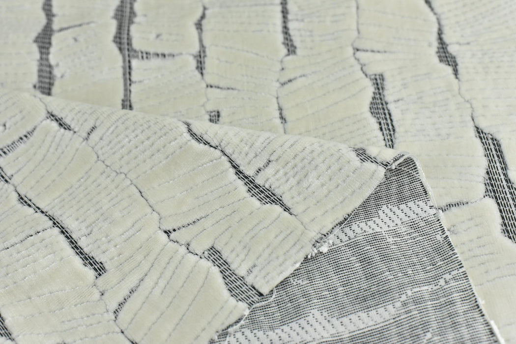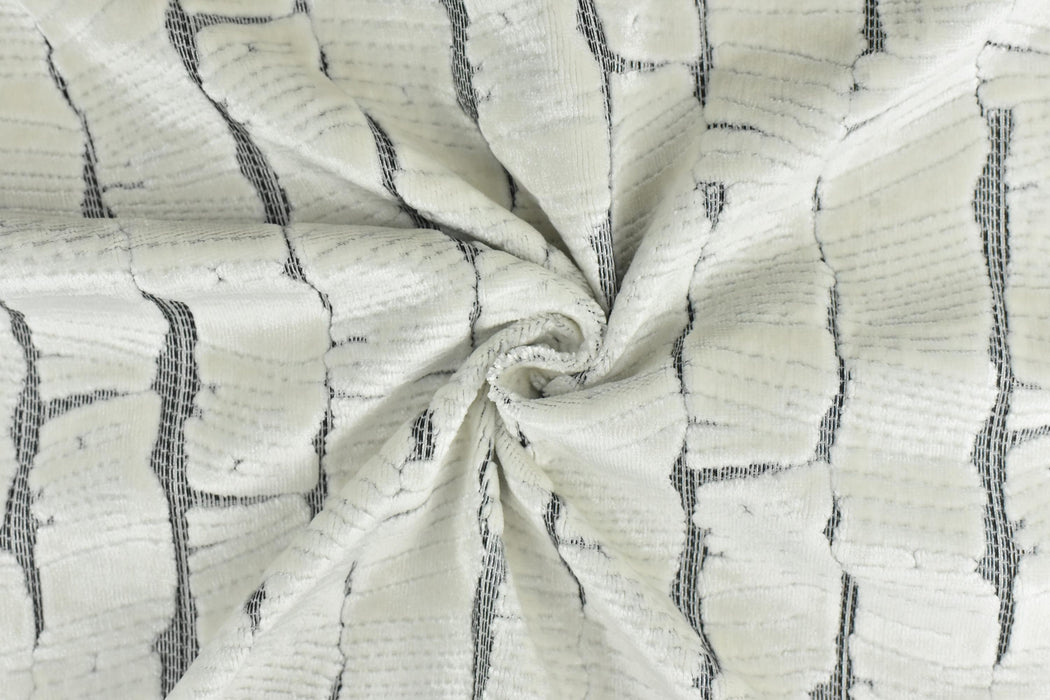 Elevate your modern interiors with this ultra-plush velvet featuring a bold abstract geometric pattern in striking cream and white. Designed for those who appreciate contemporary elegance, this heavyweight cut velvet combines artistic flair with sumptuous softness for furniture that makes a dramatic statement.Transform your furniture into functional art with this contemporary velvet that brings museum-worthy style to everyday living. Whether creating a single statement chair or an entire modern sofa set, this fabric delivers unparalleled designer appeal.
