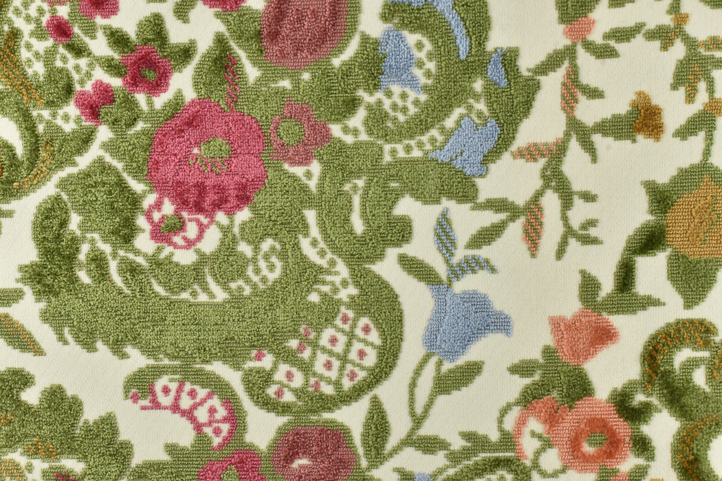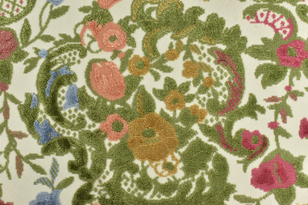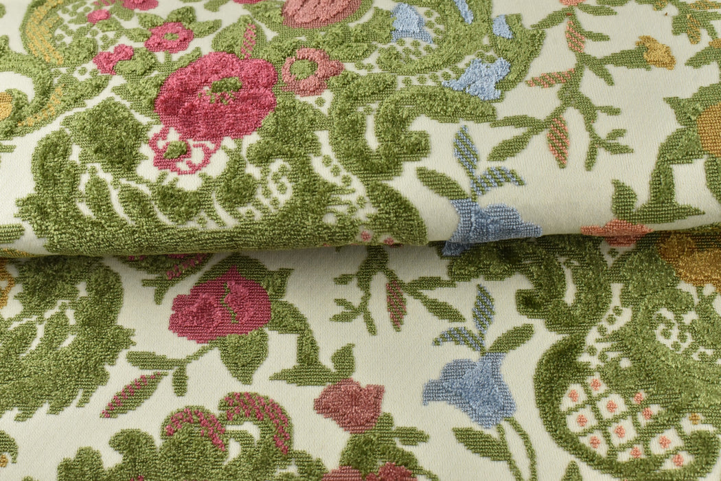 High End Multi-Colored Floral Basket Raised Cut Velvet Upholstery Fabric For Chair|High Quality Green Red Blue Velvet Fabric For Furniture