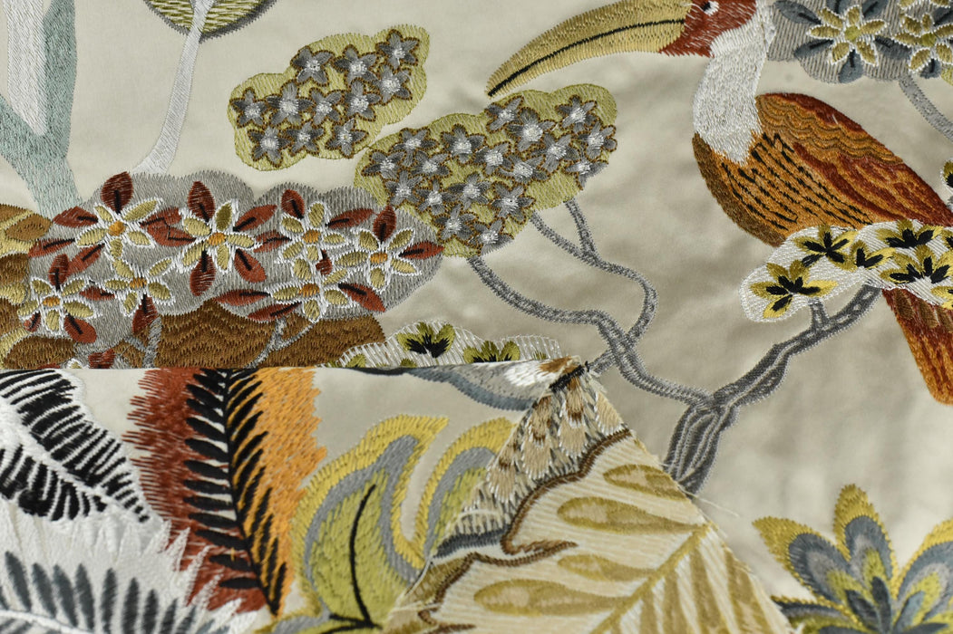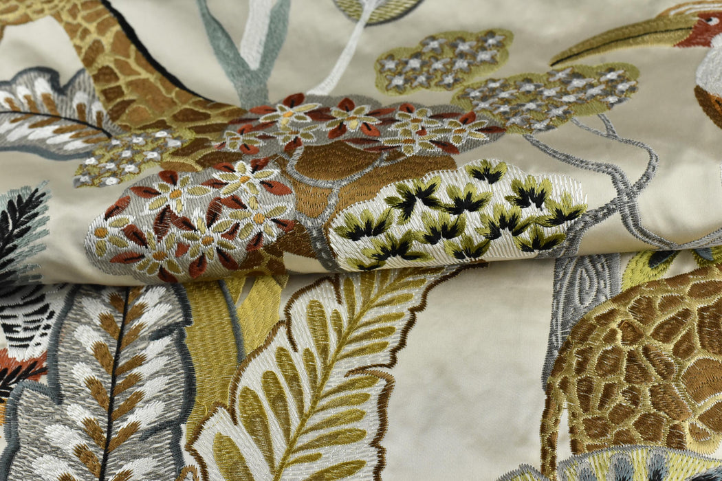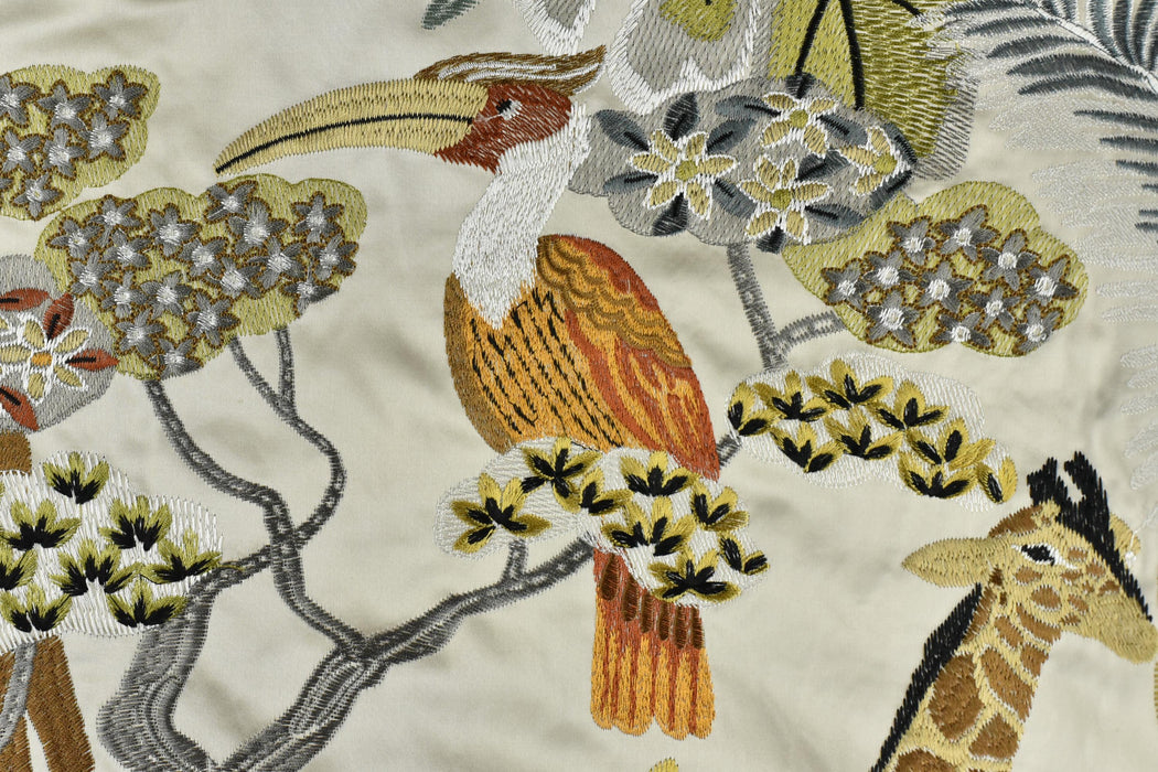 Luxury Wild Animal and Botanical Embroidered Fabric For Drapery Pillow|Exotic Zebra Giraffe Bird Fabric For Kids Room Decor