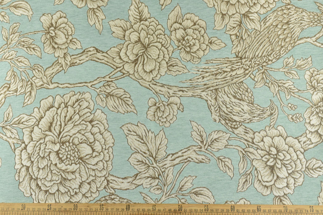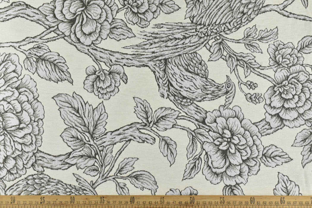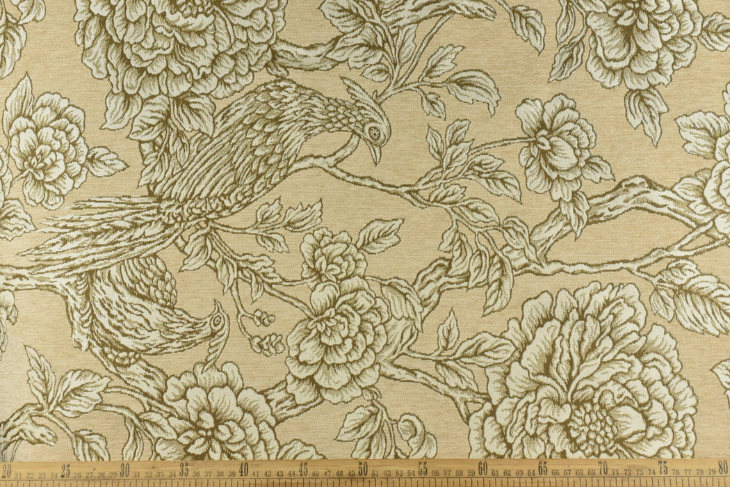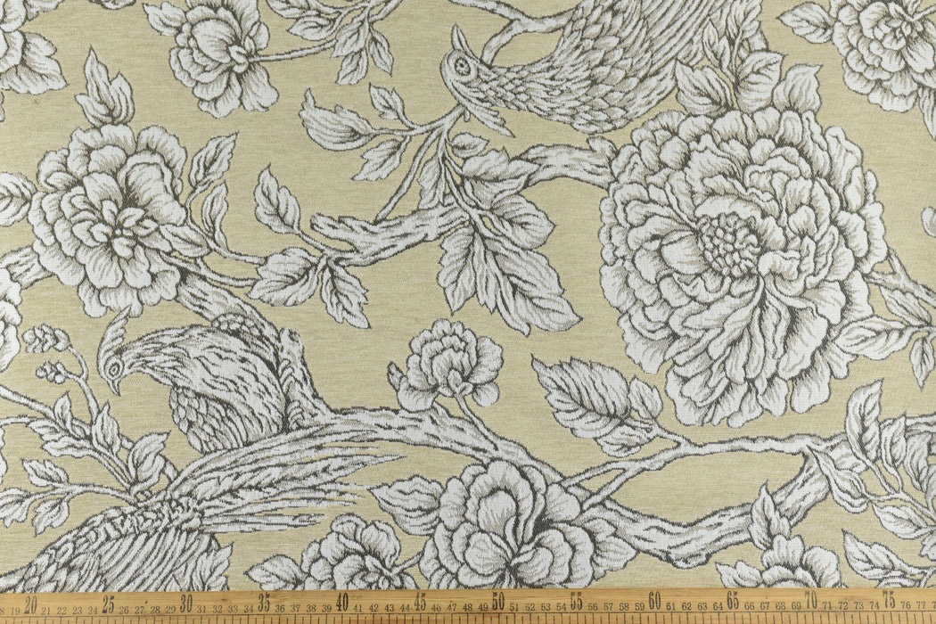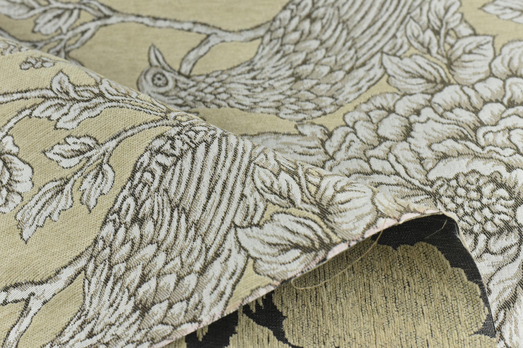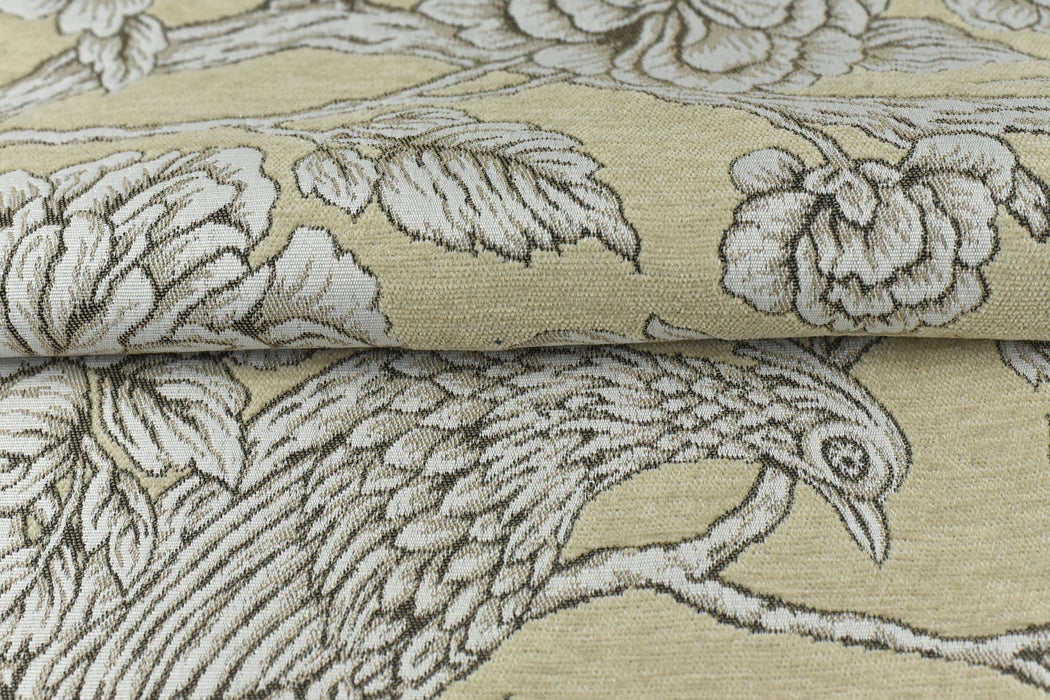 Mid-Century Modern Bird Floral Chenille Jacquard Upholstery Fabric For Chair|Vintage Farmhouse Decor Large Floral Animal Fabric For Ottoman