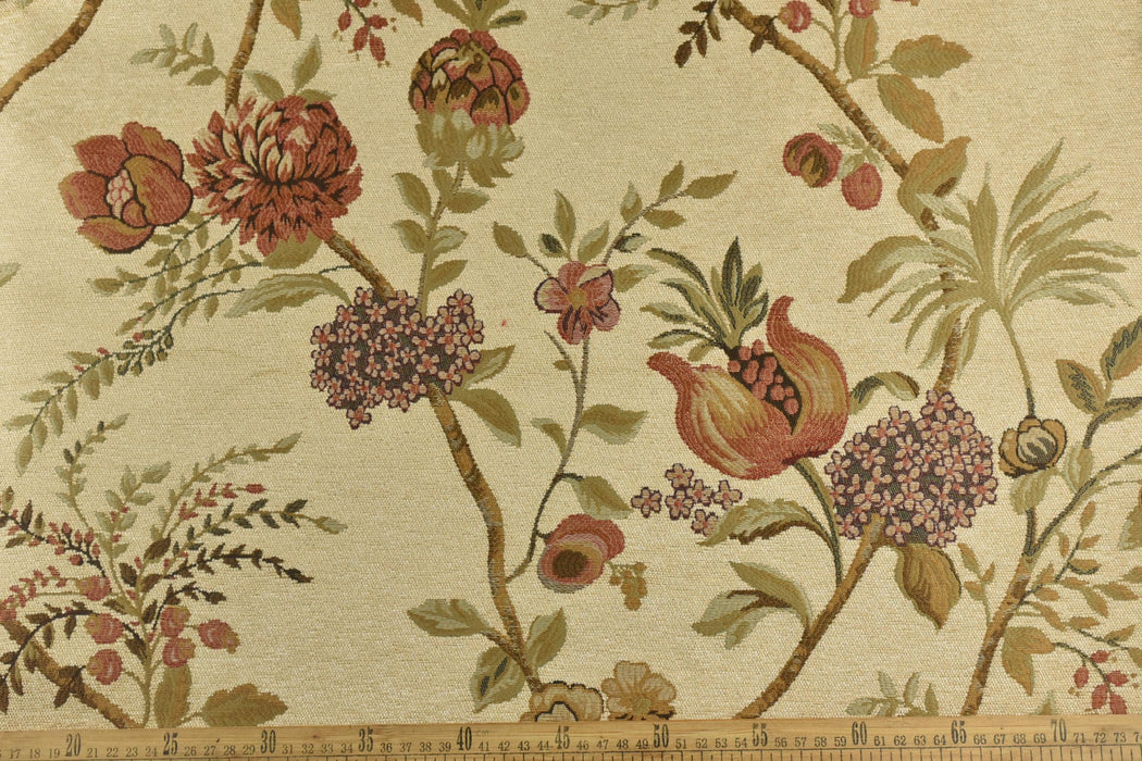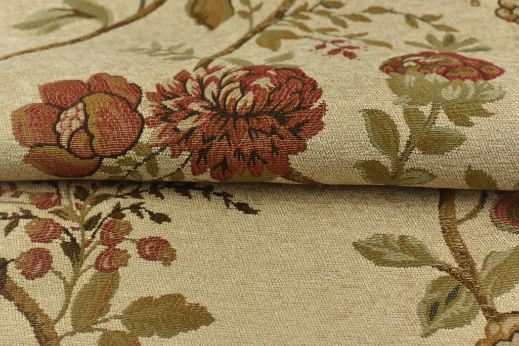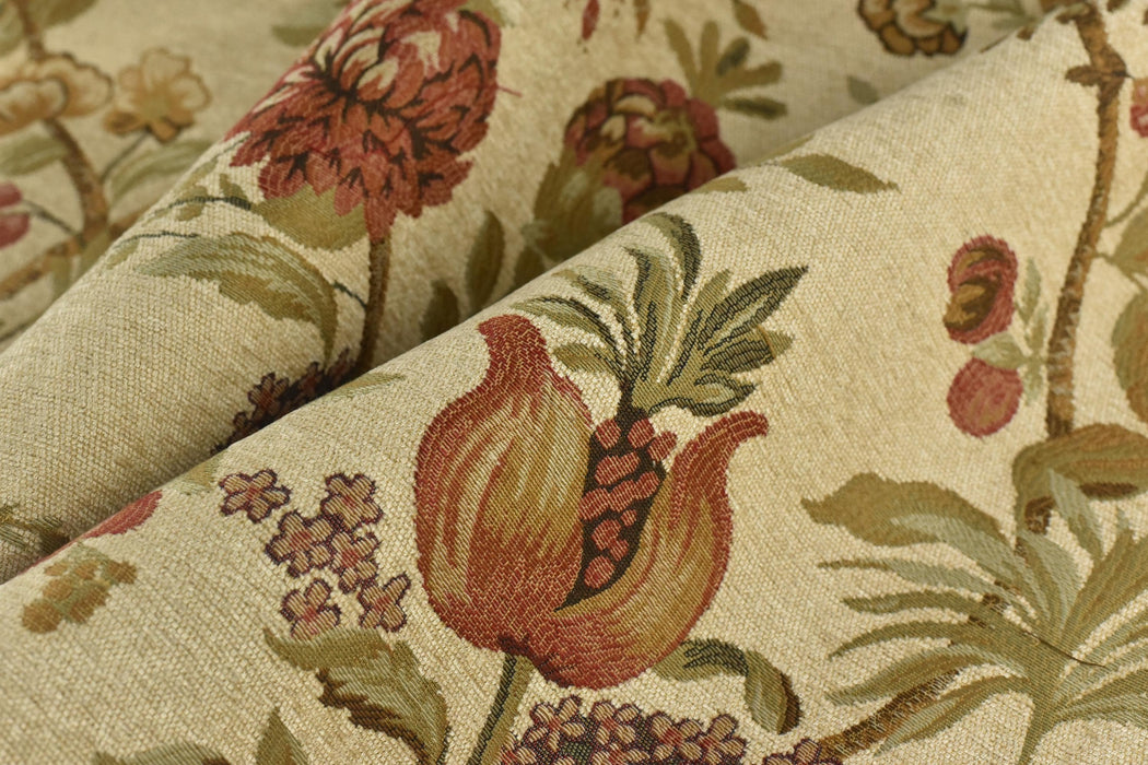 A sample is worth a thousand words! Recommend purchase a sample swatch prior to placing yards/meters.Bring bold mid-century glamour to your space with this luxurious extra-wide chenille jacquard fabric, featuring a dramatic pomegranate floral design in rich crimson, spice, and cream tones. Perfect for statement furniture and curtains, this heavyweight textile delivers vintage charm with modern durability.